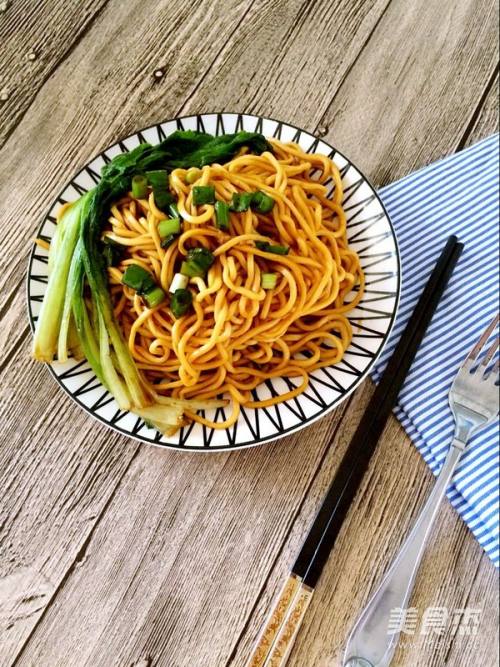 7将调好的料汁,淋入到面条中