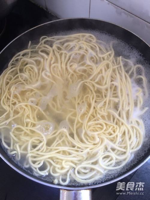 2锅中放入水烧开,加入1小勺盐,1小勺油,放入面条煮