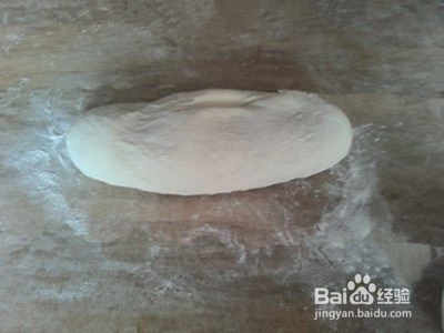 面醒好后,揉面呈椭圆形,切一小块揉成一个圆形的长条。