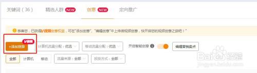进入到创意添加,点击添加视频创意,按要求上传视频创意,添加完成;