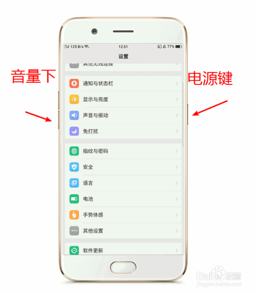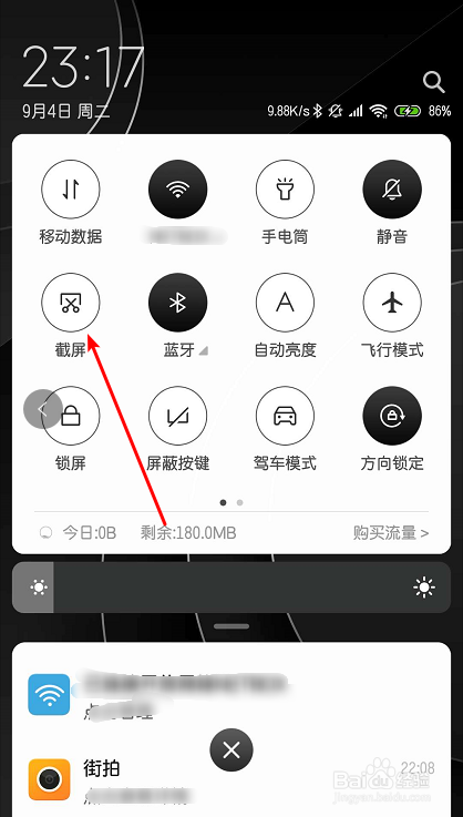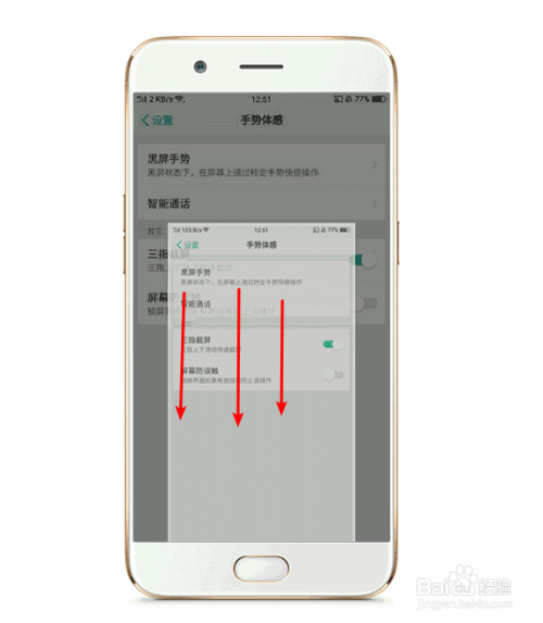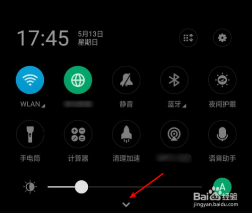 最后一种是从手机顶下滑,然后按住【>】继续下滑。
