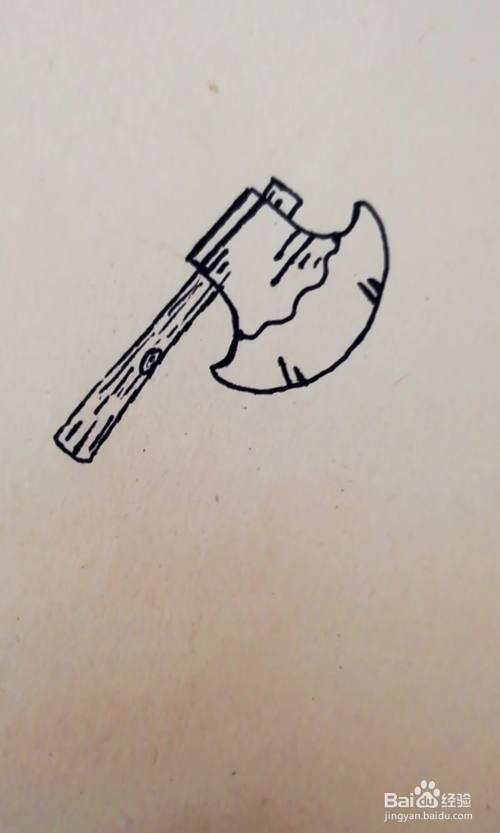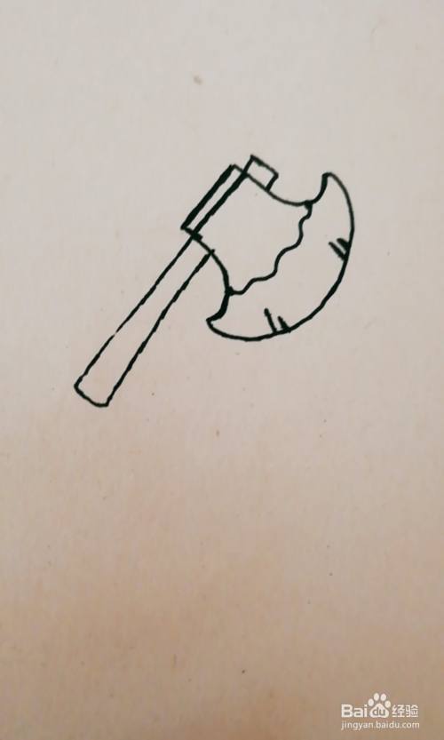 接着在斧头中间画上一条波浪线区分斧刃,画点纹理。