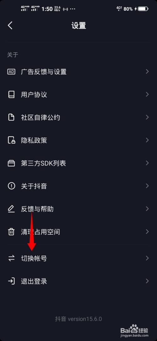 点击切换帐号的选项。