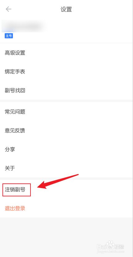 在设置页面中,点击【注销副号】,如图所示: