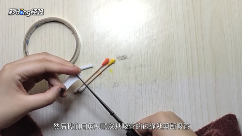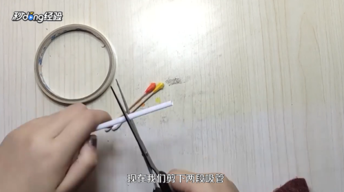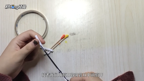 4展开吸管,用剪刀顺次从吸管的边缘处,剪吸管,不要剪断。