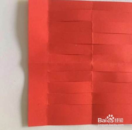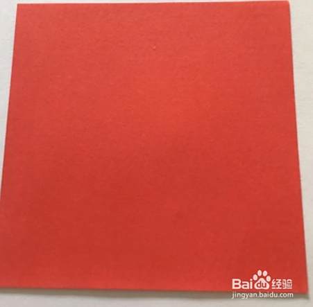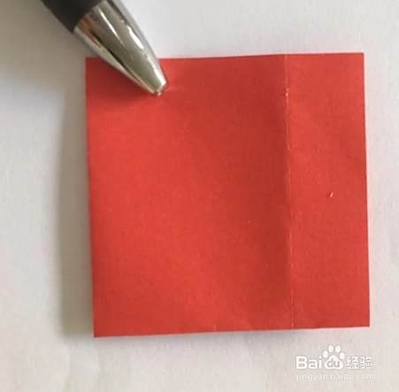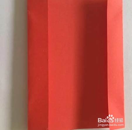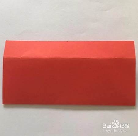 将红色方形纸上下各向内折2厘米宽的边,然后摊开将上下对齐均匀对折成长方形。