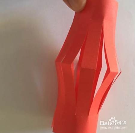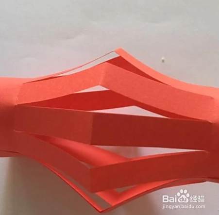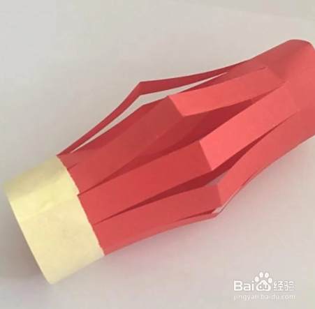 把剪好的正方形全部摊开,将左右两边没有流苏的边用双面胶黏起来,灯笼形状就出来了。