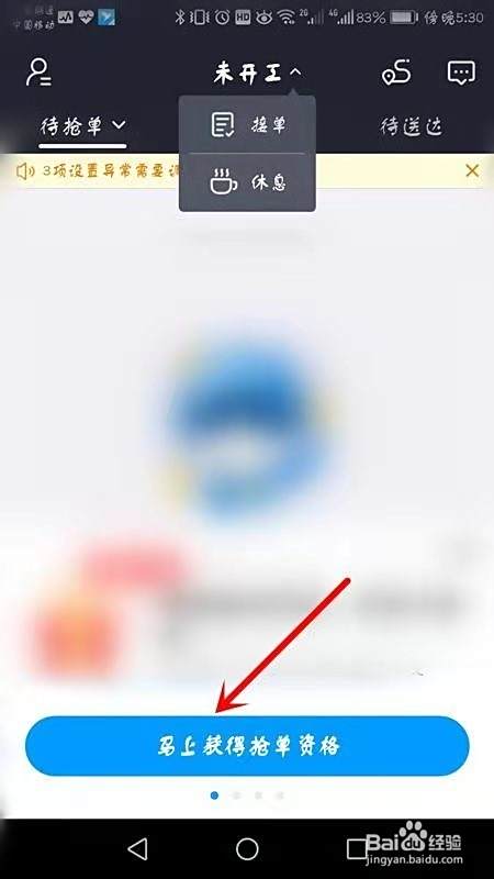5、在抢单页面,上传健康证后正式成为蜂鸟众包骑手。