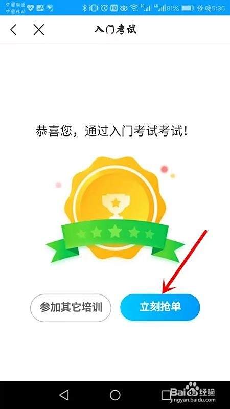 4、参与线上学习之后,参加考试,通过考试之后,点击立即抢单。