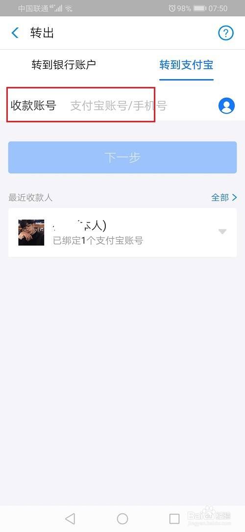 第五步我们也可以转账到别人支付宝账号,根据需要使用,如下图所示: