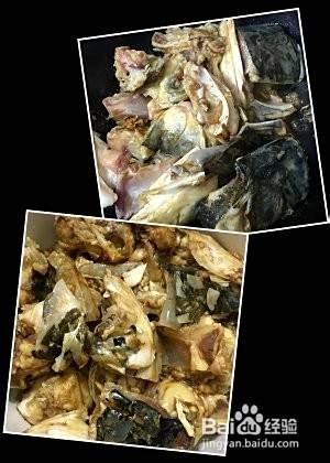 沥干的鱼头块装盆,用盐、料酒、蒸鱼豉油、生抽和胡椒粉拌匀,腌制半小时左右(腌料的盐味和量要够,鱼头入味全靠它了);