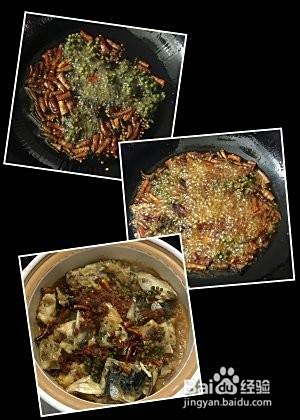 炒锅烧油适量,倒入腌好的鱼头块,轻轻翻炒至鱼头表面上色后,铲入砂锅,并开火加热;