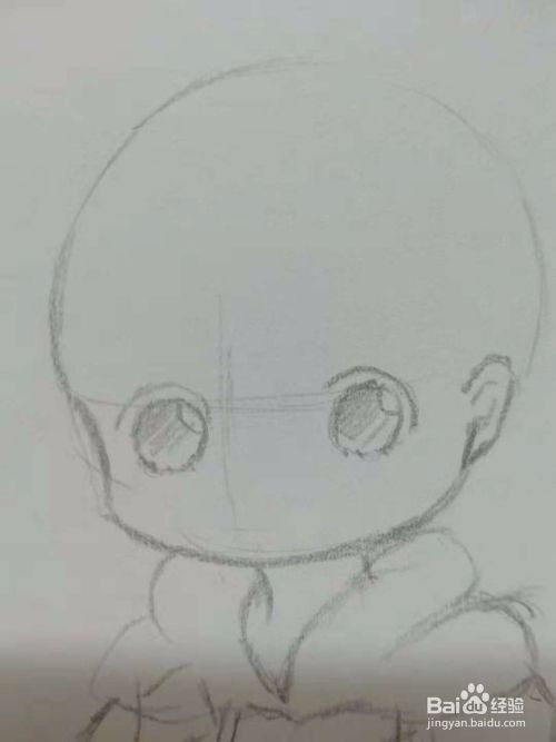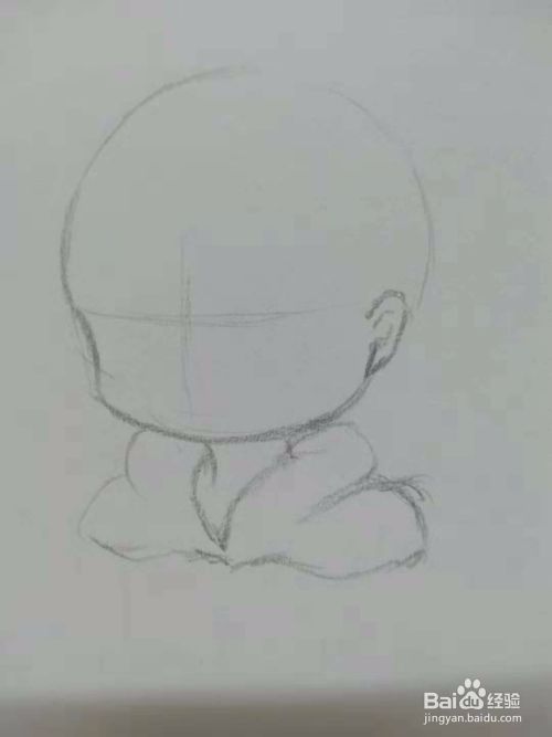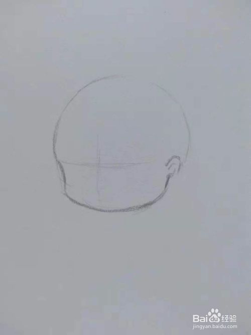 在圆下边修出脸型轮廓,然后再画出耳朵。
