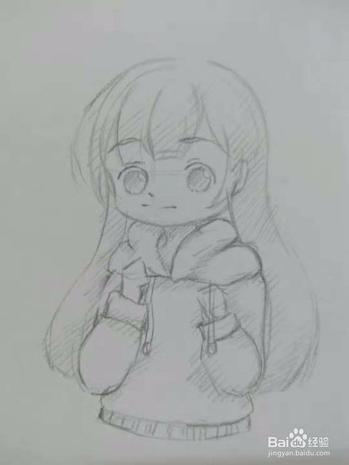 画出少女双手。