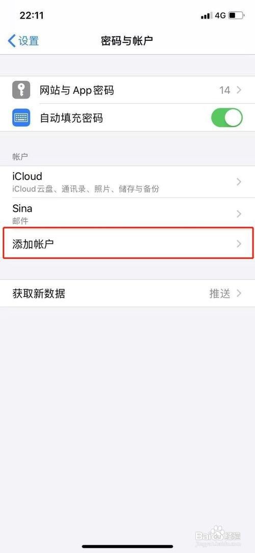在进入“密码与账户”之后,再点击进入“添加账户”