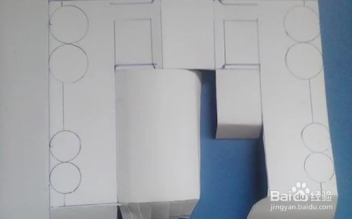 接下来用白纸卷一个圆筒做烟囱,底部剪成多条,用来粘贴。