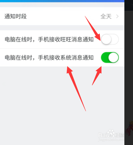 如图就可以设置电脑在线的时候,可以关闭手机接受的信息。