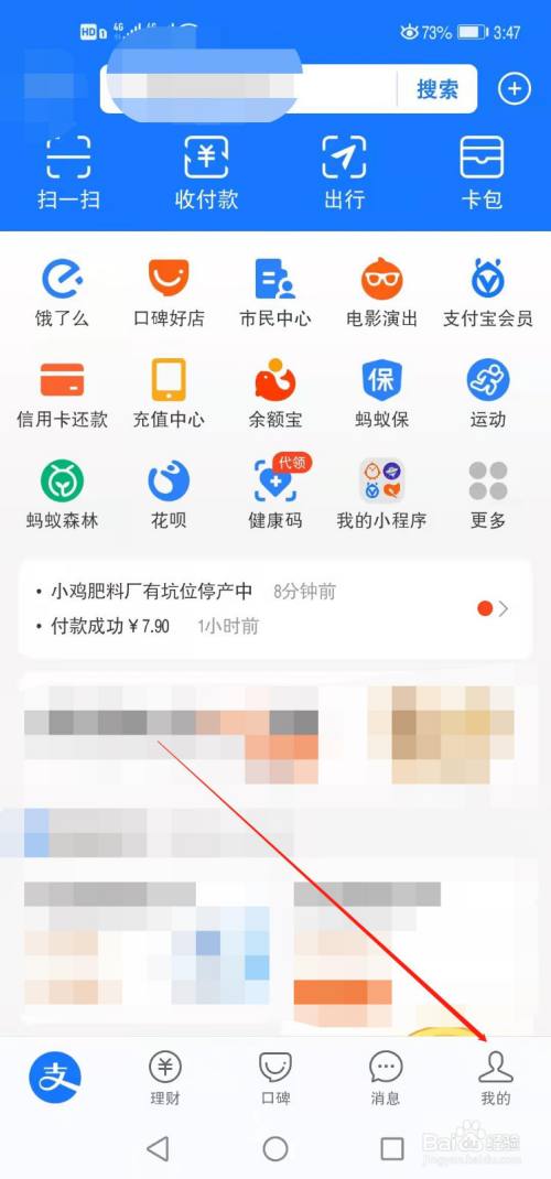 首先打开支付宝,进入后点击页面右下角我的,如图所示。