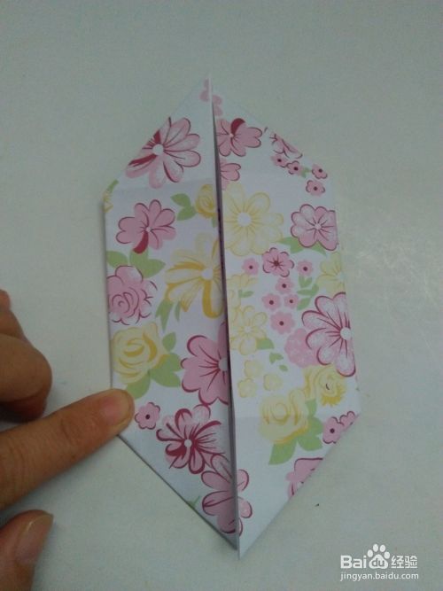 我们再把短边向中线对齐,我们把两侧的角拉开,如图二的样子。(可以参考花篮的折法)