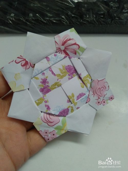 接下来,我们再把四个内角向外折,再把底下的角翻到上边即可。底盘就做好了。如下图所示。
