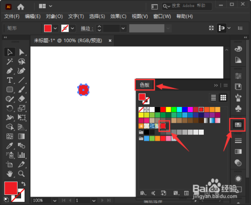 我们选中矩形,然后在色板中点击红色圆角形状的图案。
