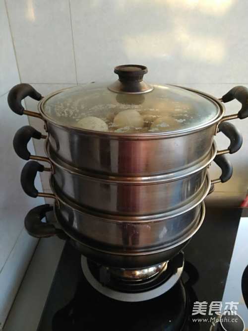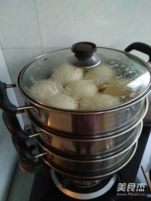 12当再次发酵至2倍大时,锅里加入足量水,开大火,上汽以后,持续蒸16-18分钟。