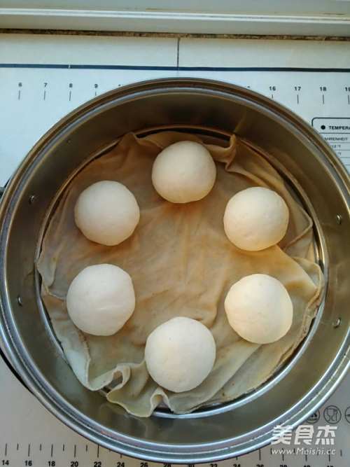 9将每个剂子搓匀滚圆,放入铺有屉布的蒸屉内,相互之间留些距离,以备二次发酵变大。