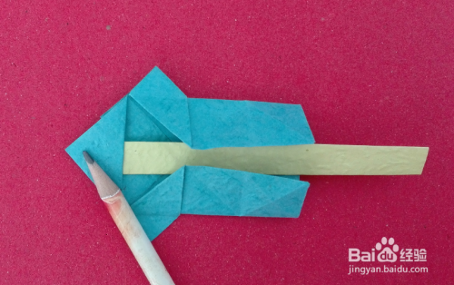 把小长方形的纸折成小条,如图塞到铅笔指向的地方