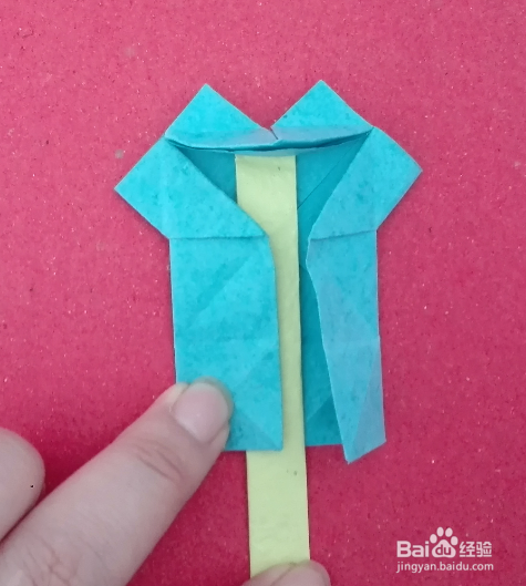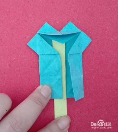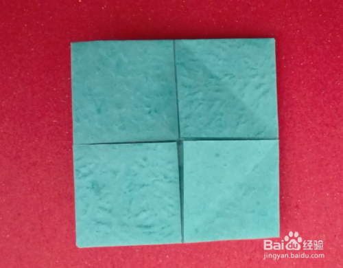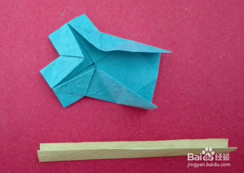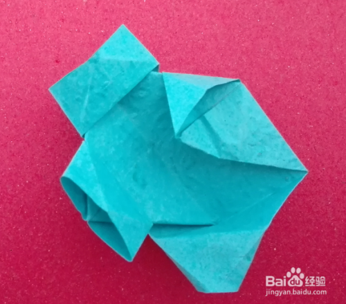 把剩下的两个角拽开,翻过去,折平,压好,如图所示