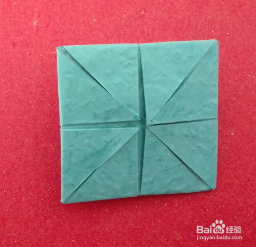 把它翻过来,再沿折痕折向中间,四角相同,如图所示