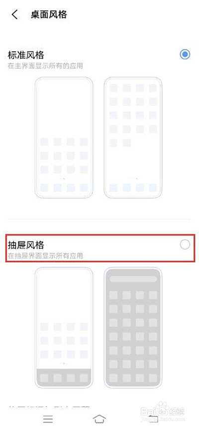 4、在桌面风格页面勾选【抽屉风格】即可。