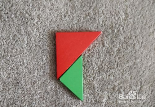 在绿色三角形右下侧,放上橙色三角形挨着,如图。这样就拼好了。