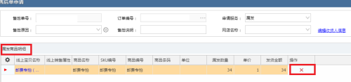 在“漏发商品明细”找到要发漏的商品,把不要的商品用后面的红叉叉掉,剩下要补发的商品,点击提交并申请就OK了。