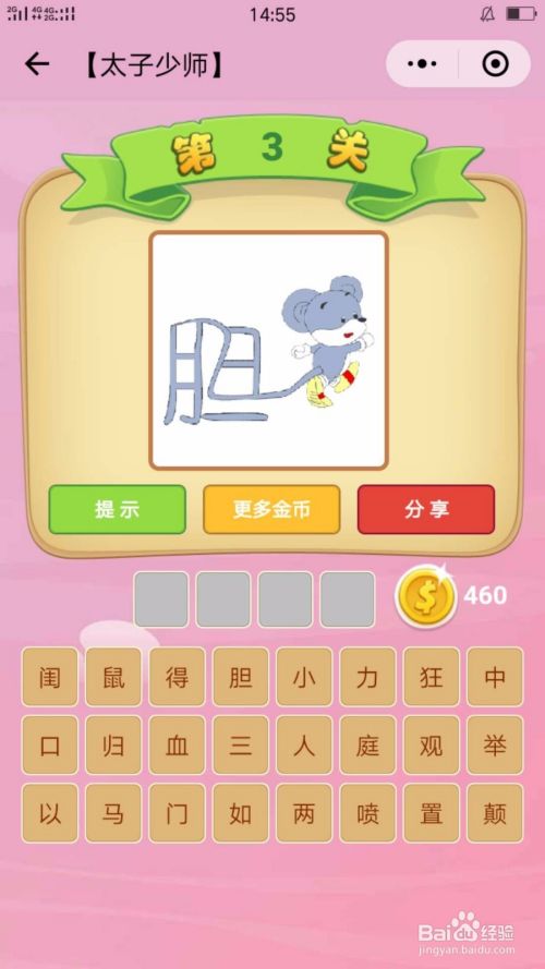 “成语猜猜看”太子少师~第3关:图片上是一个胆字加一个老鼠,猜成语。