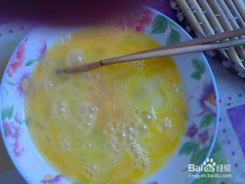 然后往打好的鸡蛋中加入适量的食盐用筷子搅拌均匀。