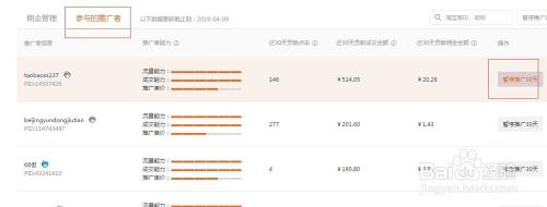 点击佣金管理后台,可以进行产品和类目佣金修改;点击“参与推广者”,可对效果不好或者异常订单较多的达人进行“暂停推广三十天操作”