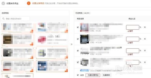开启后首先设置店铺的类目淘宝客佣金,设置好类目佣金后选择店铺主推产品,设置好相关产品佣金后,点击左下角“开启计划”即可