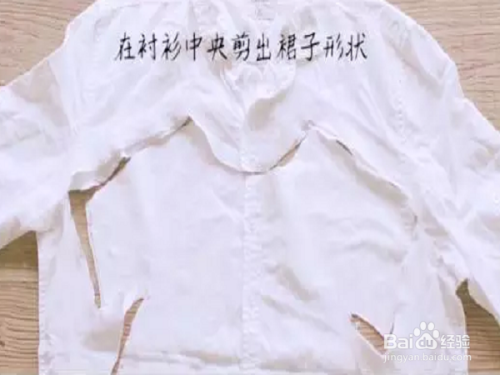 在废旧的衬衣中间,剪出公主裙的形状。如下图。