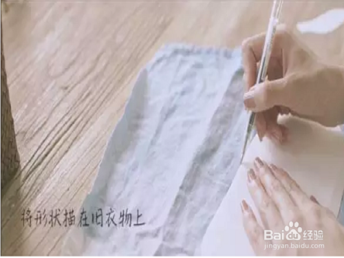 准备好纸样,并按照纸样描在旧衣上描下形状,描好了剪下来,如下图。