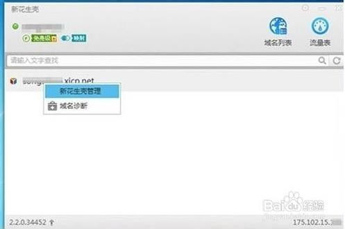 从花生壳官网下载最新版本客户端,安装好之后登录。在默认域名的地方点击,新花生壳管理。