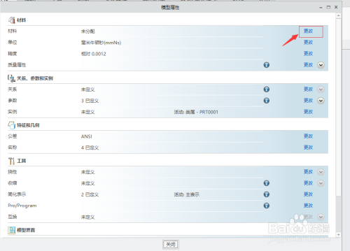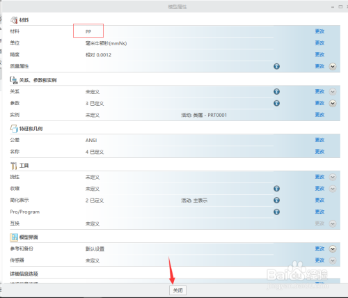 回到“模型属性”对话框,可以看到材料已经被设置为“PP”。关闭”模型属性“对话框。