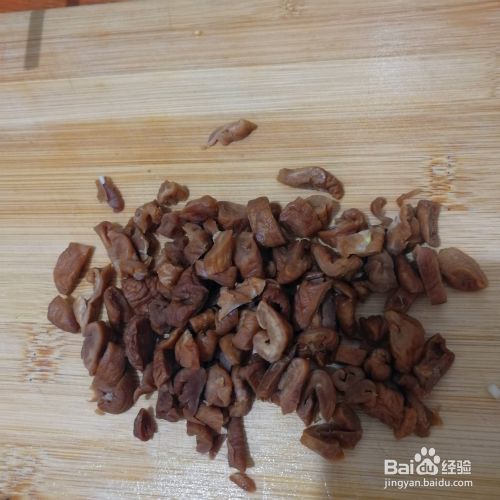 将一旁沥干净水的萝卜干切成小块,喜欢吃多大的就切多大,切小一点好入味,切好后放置在一旁备用。