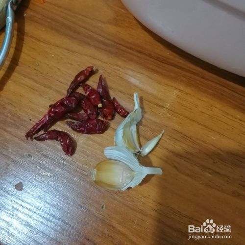 准备好干辣椒和蒜瓣,洗干净之后干辣椒切段切开,这样才够辣,蒜瓣剥皮后拍扁剁成蒜泥,和干辣椒一切放置在一旁备用。