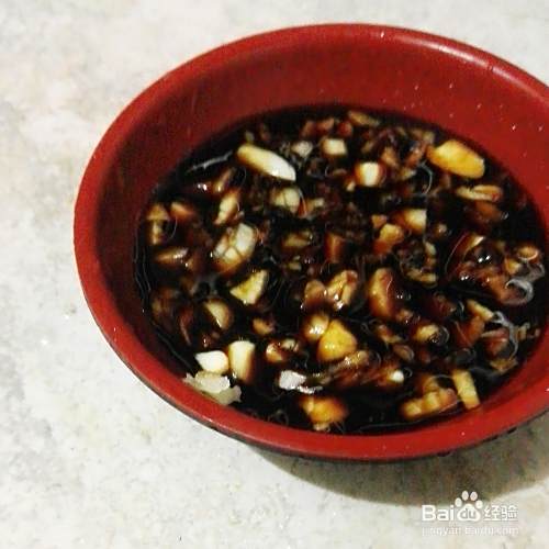 把大蒜籽剁碎加上一小碟酱油,放锅里烧滚。