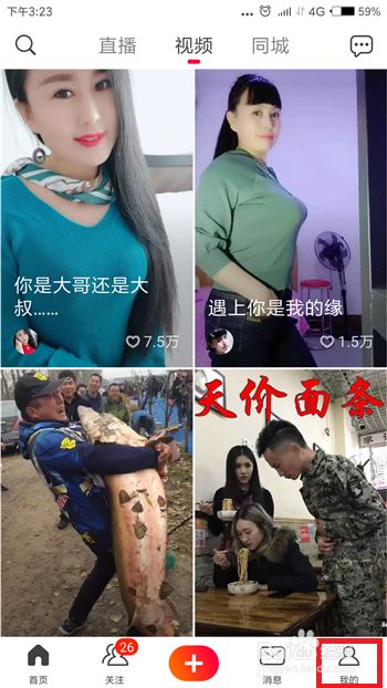 不想让火山小视频中发布的视频同步到今日头条可以有两个方法,首先打开火山小视频,在首页点击右下角的【我的】选项。