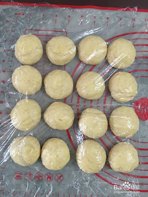 分割成均等的16份滚圆,覆盖保鲜膜松弛约15-20分钟。