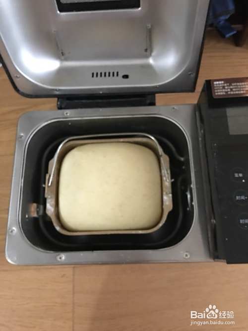 面包配方里材料全部放入面包机内桶,盐和酵母分开放,进入和面程序,揉至完全阶段。开启发酵菜单进行基础发酵约1小时至2倍大。