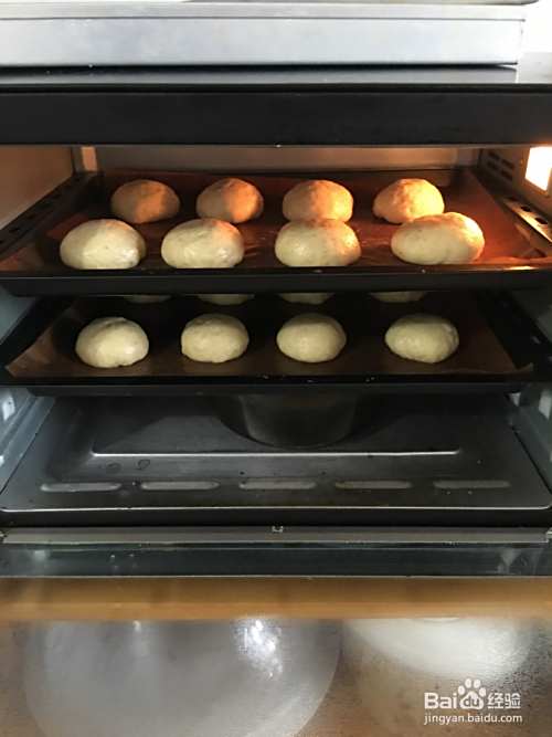 全部包好后放烤箱二发,开启发酵档,烤箱底部放一小盆热水。