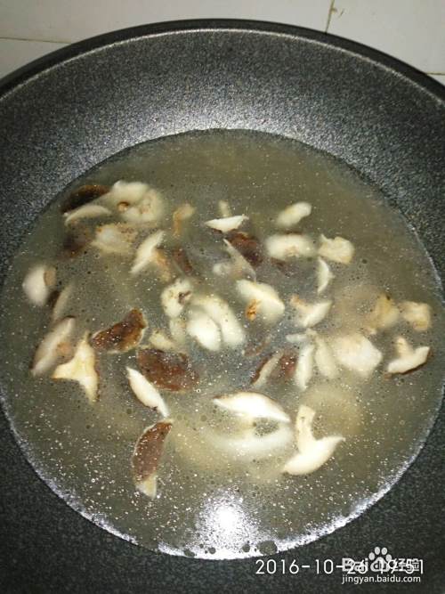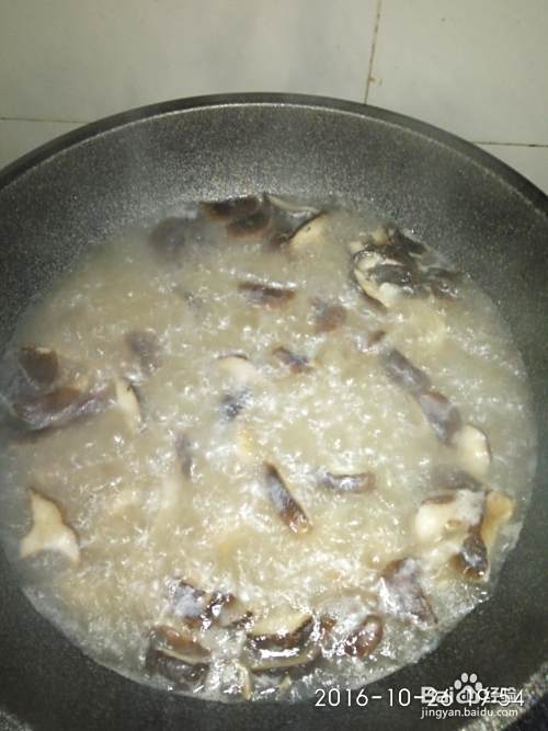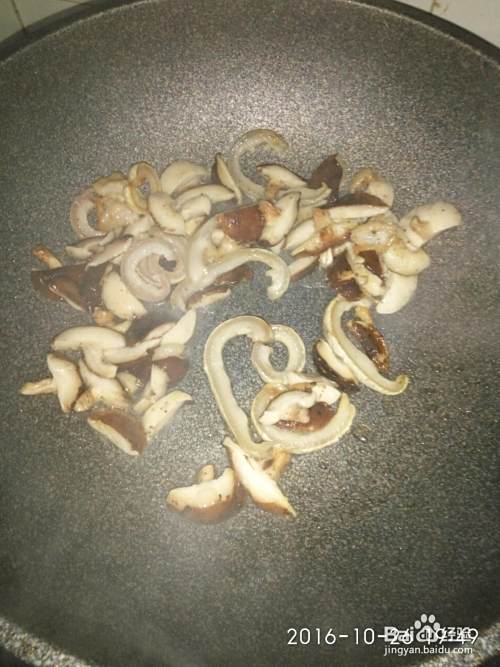 加香菇翻炒,炒出香味。
