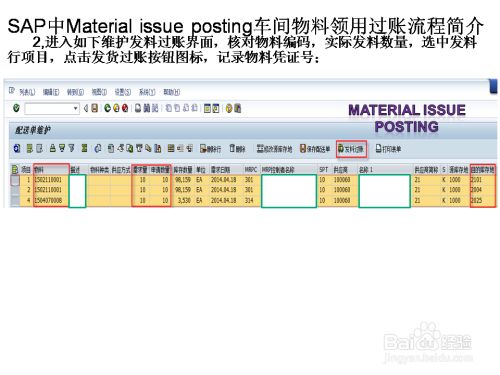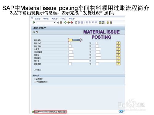 进入如下维护发料过账界面,核对物料编码,实际发料数量,选中发料行项目,点击发货过账按钮图标,记录物料凭证号;